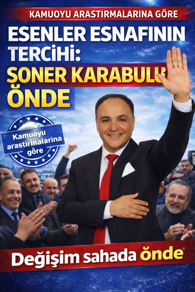 Seçime kısa bir süre kala Esenler’de konuşulan ortak görüş; Soner Karabulut’un sandıktan birinci çıkmaya en yakın aday olduğu yönünde. Esnaf çevrelerinde, “Bu seçim değişimin seçimi olacak”, “Sahada fark açılıyor”, “Karabulut rüzgârı esiyor” yorumları dikkat çekiyor.